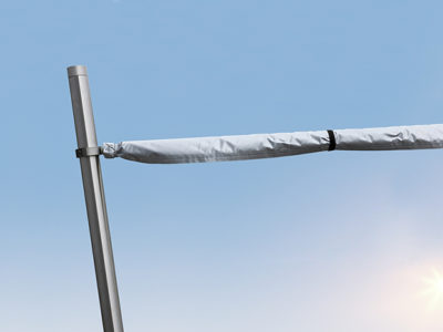 • Durch die optionale Höhenverstellung kann das Tuch abgesenkt werden und bietet Schutz bei tiefstehender Sonne